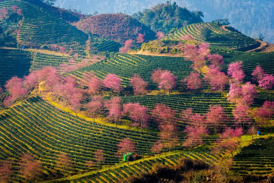 Mộc Châu vào mùa xuân mang một vẻ đẹp rất riêng. Đồi chè xanh mướt, hoa mận, hoa đào nở rải rác khắp các bản làng, không khí trong lành và mát mẻ. Đây là điểm đến lý tưởng cho những ai muốn rời xa phố xá ồn ào, tìm một không gian rộng mở để hít thở và thư giãn.